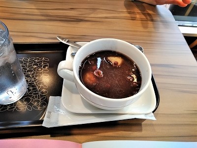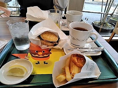 ![]() モスバーガーで昼食(玄米餅入りぜんざいも注文) |