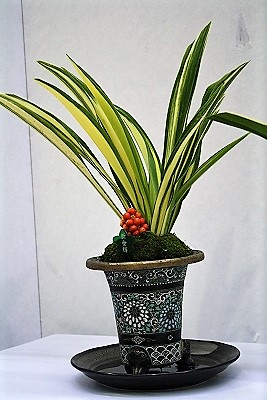 ![]() なかなか大きくならず40Cmぐらいで¥5万ほどで販売しています。 鉢にも凝っていますね! |