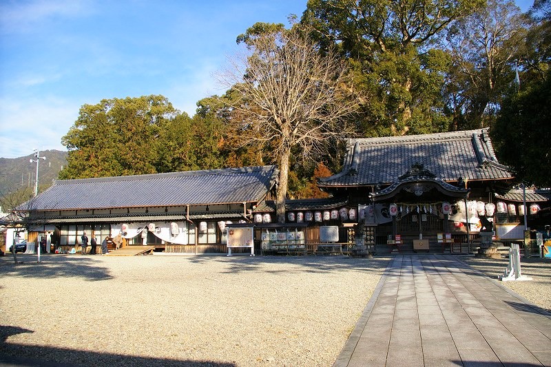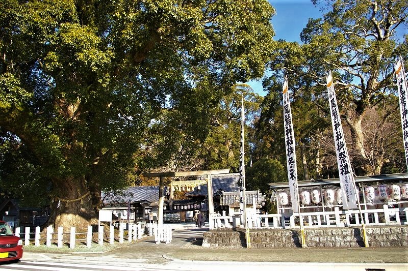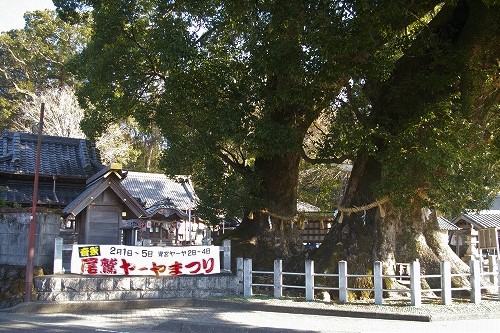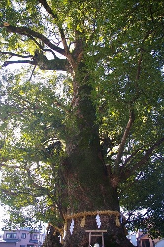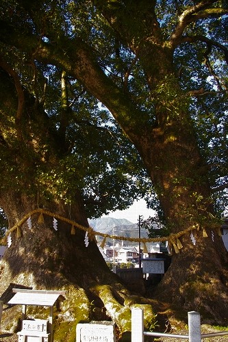 ![]() 大楠は、雄楠が周囲10メートル、雌楠が周囲9メートルにも達しており、樹齢も一千年以上と推定される |