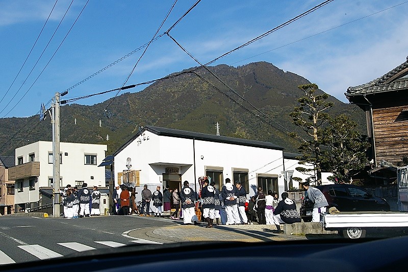 ![]() 祭り関係の人が集まってきました。 車が出られなくなるので急いでお参りして! |