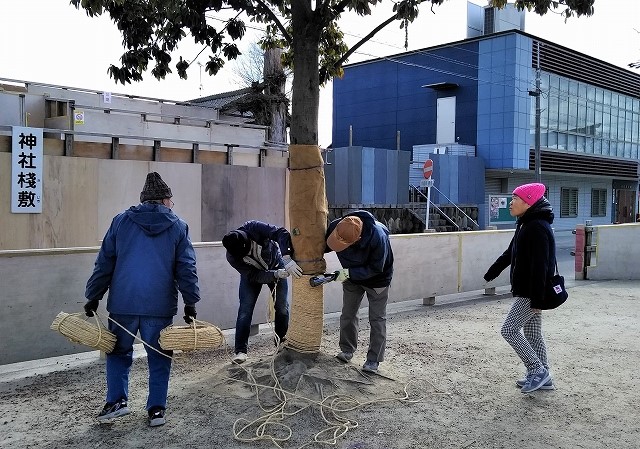 ![]() はだか祭りでケガをしないように荒縄を巻いてクッション替わり |