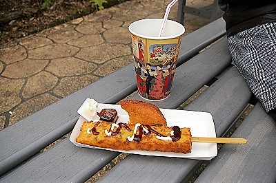 ![]() ランチはカレーパンとスティックになったお好み焼き |