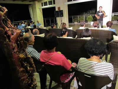 ロビーにで30分三線での歌を披露 ミヤギマモル(本名:宮城 衛)