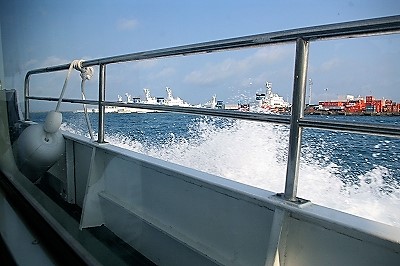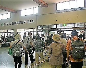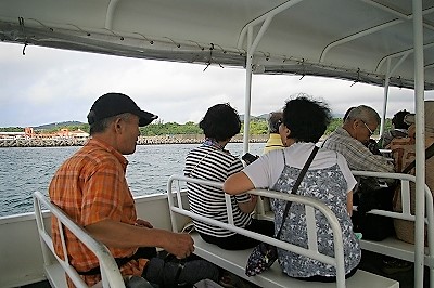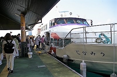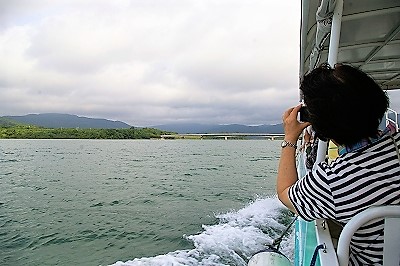 ![]() 大原港に着いて、トイレ休憩があり遊覧船に乗り換えすぐ発つ! |