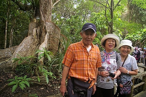 ![]() 『サキシマスオウノキ』 以前は「板根」の間で記念写真! 平成12年4月に林野庁の「森の巨人たち百選」に選ばれた全国でも珍しい木です。 樹齢は400年、幹周りは360cm、樹高は20mもあります。 |