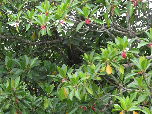![]() 特殊な形態は、地下に殆ど根を張らずに、地上部の板根で、樹幹を支えています。 |