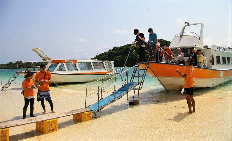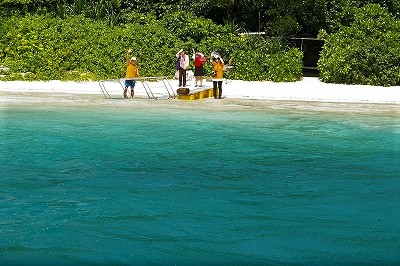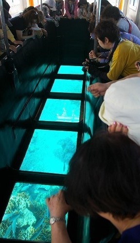 ![]() 海岸に降りてグラスボートに向かいます |