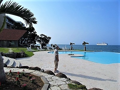 ![]() ホテルサンシャイン入り口で許可を受け、ロビーを抜けてプールサイドへ! |