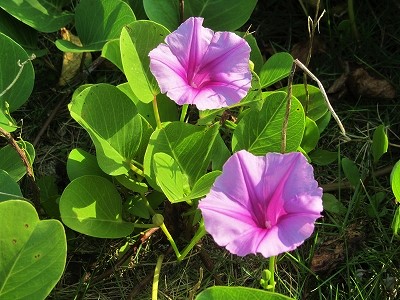 ![]() 足元にはハマヒルガオを、海岸線の遊歩道を歩き戻ります。 |