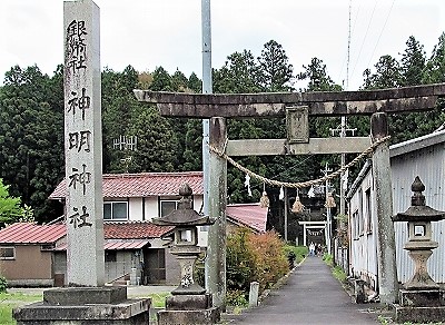 ![]() 神明社の境内にある芭蕉句碑 『山路きてなにやらゆかしすみれ草』 先の「三社灯篭」左の神明社にあるらしい |