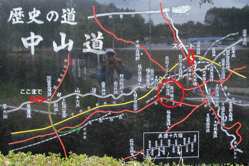 8:25千種駅>9:30大井宿(恵那駅)==中山道==1:20〜2:05武並駅>千種駅