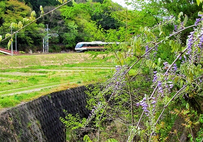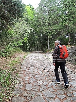![]() 山藤を眺め、十三峠への石畳を歩きます。 |