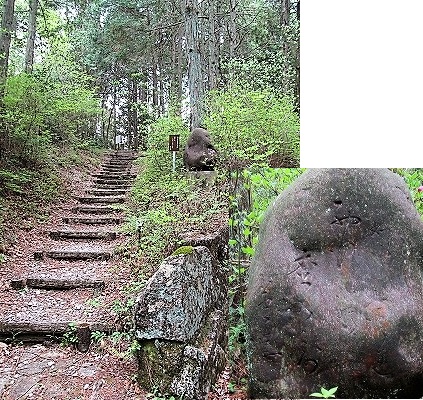 ![]() 芭蕉の句碑 「西行のわらじもかかれ松の露」 |
