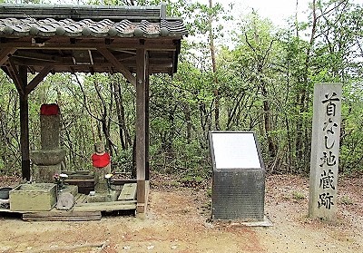 ![]() 伝説では、二人連れの武士が道中、地蔵前でい昼寝をしていたが、一人が眼を覚ますと、仲間の首がない。 怒った武士が「仲間が襲われたのに黙ってみているとは何事」と地蔵の首を刀で斬り落としてしまったという。 |