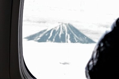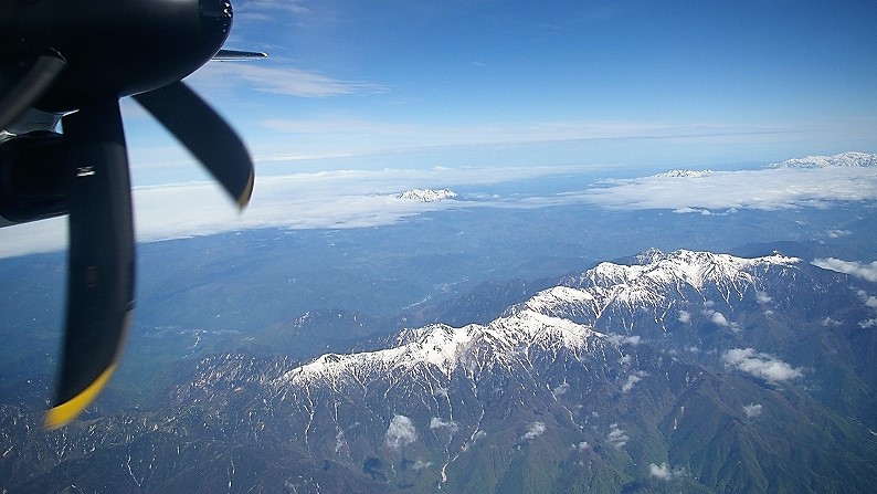 ![]() 反対側の窓からは富士山が 諏訪湖上空 |