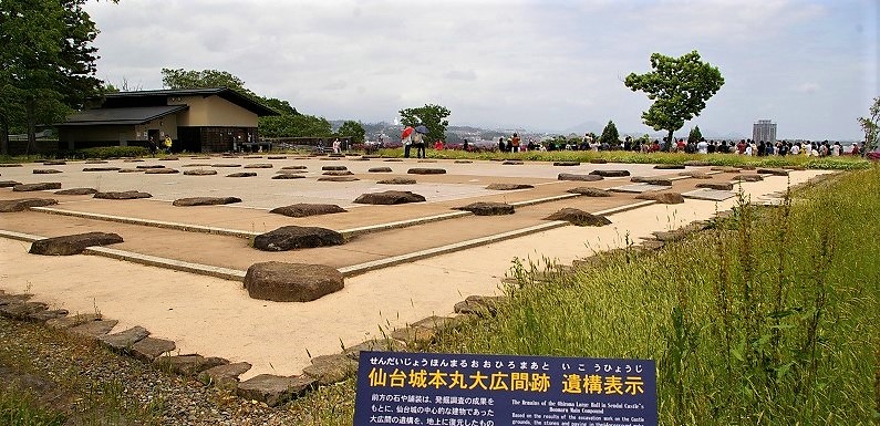 ![]() 仙台城VRゴー\500 ツアースタート まずは仙台城上空俯瞰が見えるポイントへ移動。 ![]() 本丸の遺構跡 正宗が座った「上段の間」を復元した |