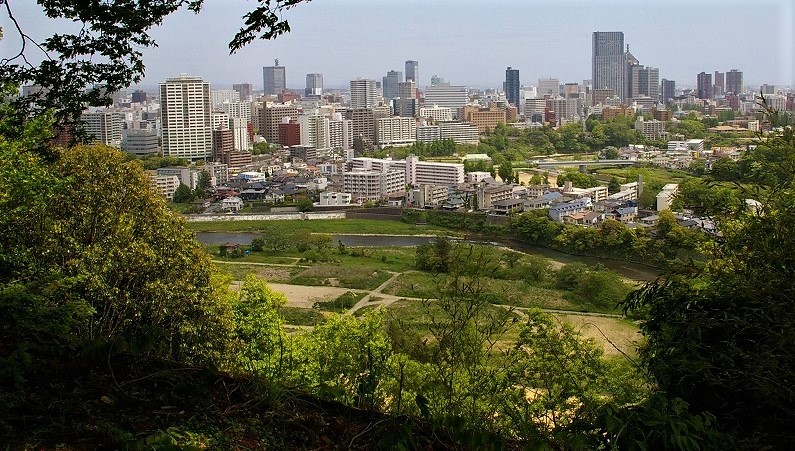 ![]() 広瀬川が流れる東と南を標高130mの断崖が固める天然の要塞に築かれた城 |