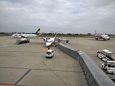 ![]() ちょっとしたアクシデントが重なり、私たちが最後の搭乗者! 5分遅れでセントレア離陸・・・ |