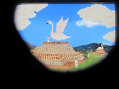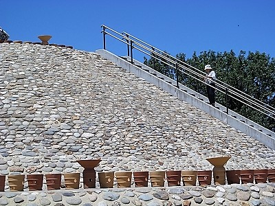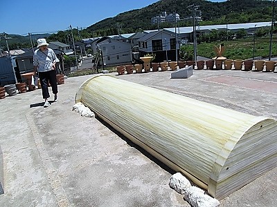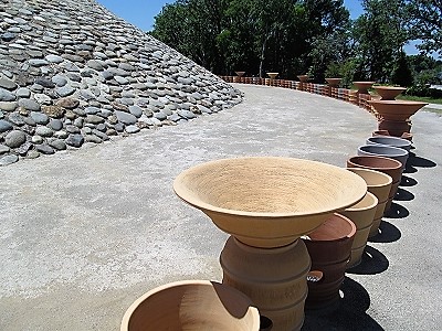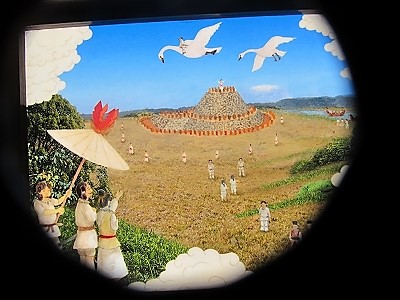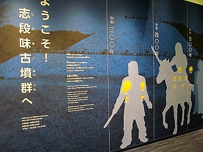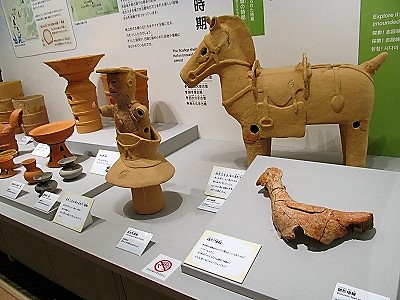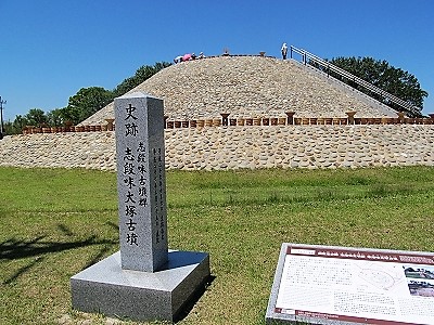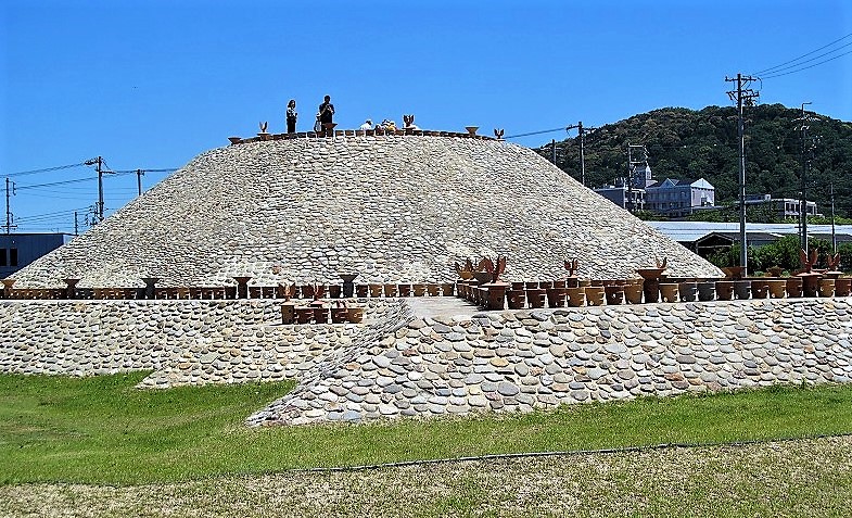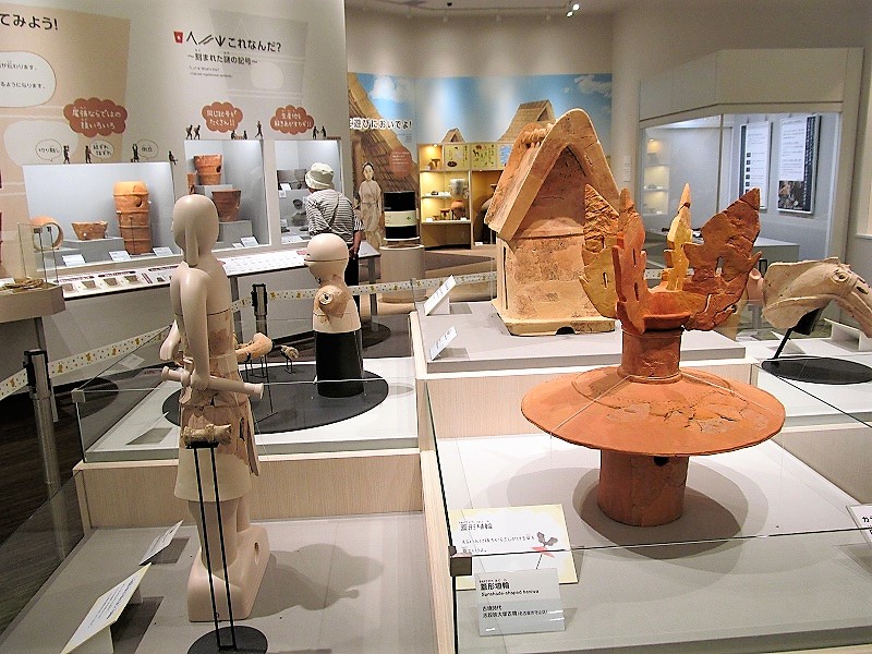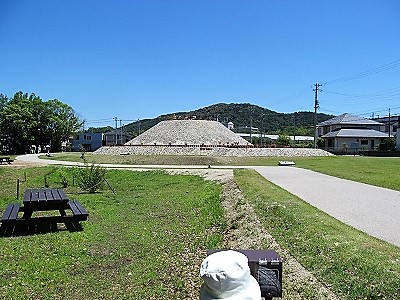 ![]() 当時の姿を完全復元。約500本の埴輪の複製品が並び、墳丘上には木館も復元されていました。 |