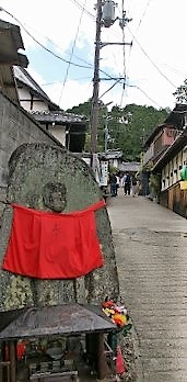 ![]() 奈良県大和郡山市 地蔵菩薩に迎えられ山門をくぐる。 本堂までの石段に躊躇ちゅうちょした妻・・・入山料\500 |