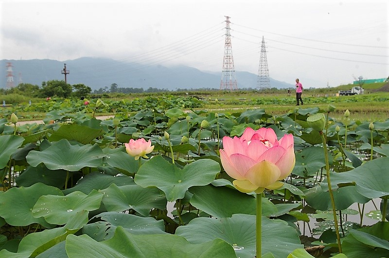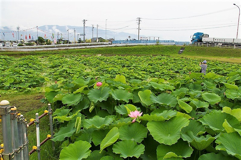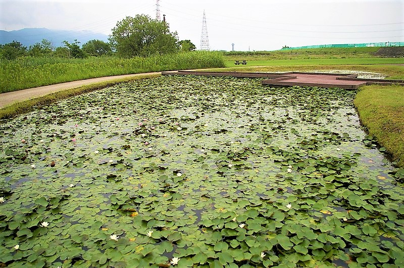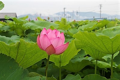 ![]() 養老山脈を背に 道駅「立田ふれあいの里」隣の蓮池 |