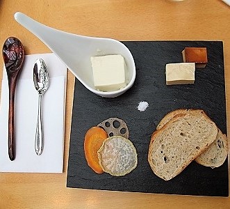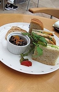 ![]() 左)サンドウイッチと古代米 中)自然農法で育てたを食材使用 右)葛焼き |