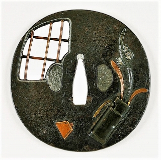 ![]() 拵(こしらえ)えの中の鍔(つば) 静岡県三島にある佐野美術館所蔵 |