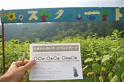 ![]() 粗品はヒマワリ柄のファイルかピンバッジかティッシュから一つ選ぶ |