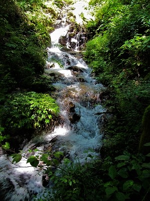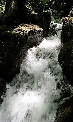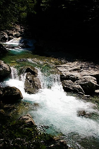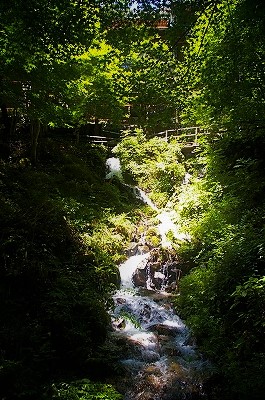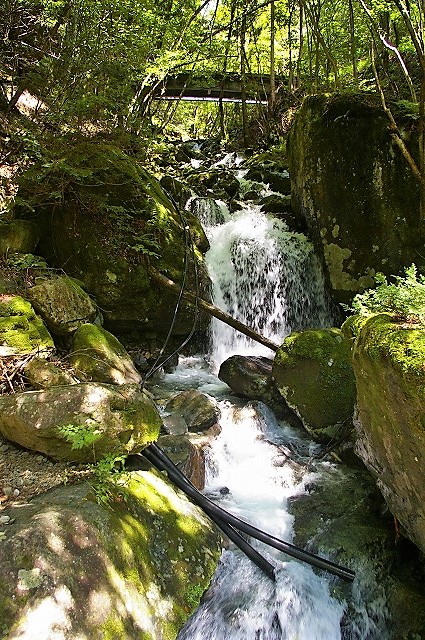 ![]() 何となく不満足な不動滝を離れ、本谷のやじろ橋へ移動した。 |