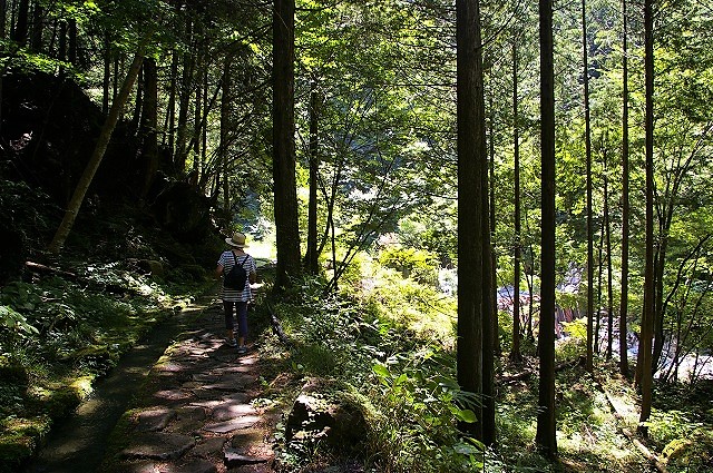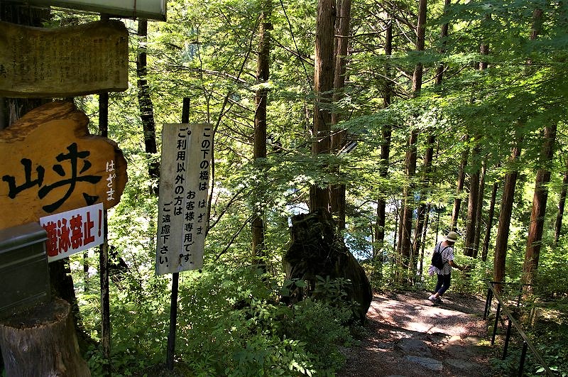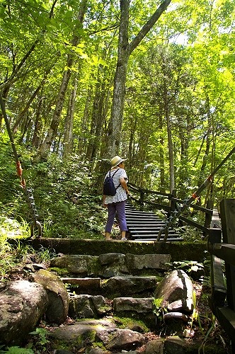 ![]() 付知川に架かる階段状のやじろ橋を下る。 ランチ待ちの行列が・・・! |