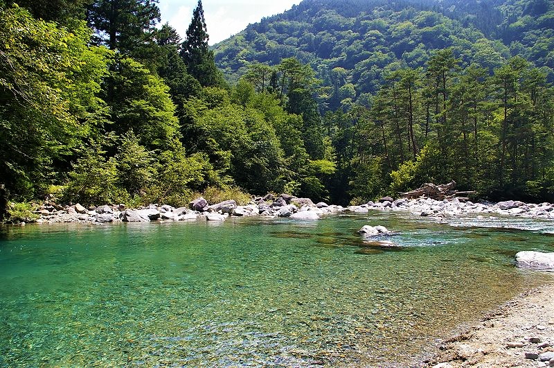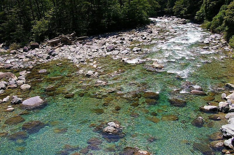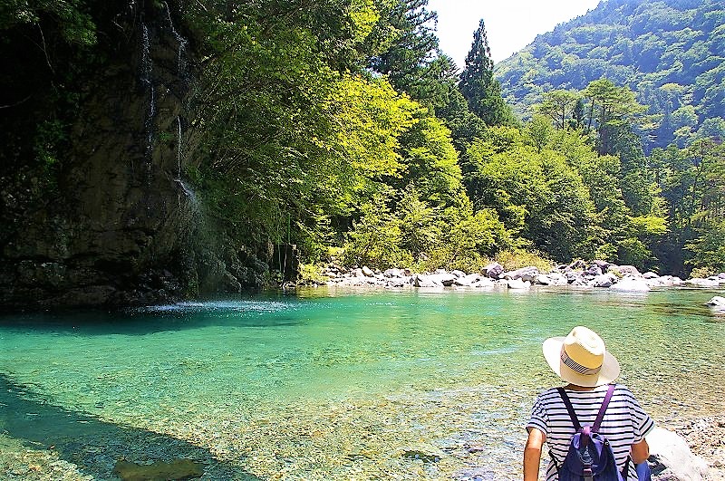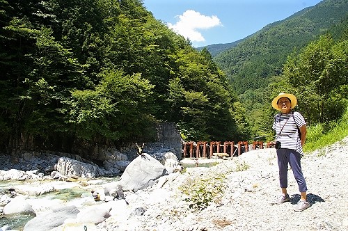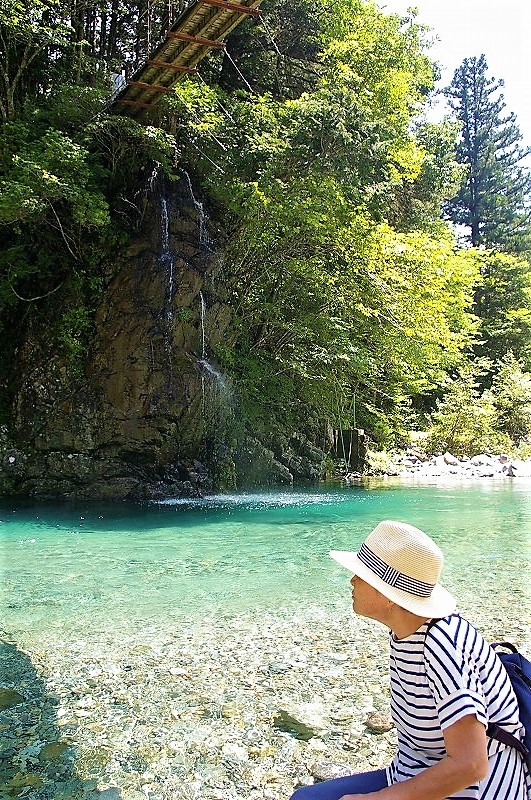![]() やじろ橋を渡って「岩魚の里 峡(はざま)」でランチの予定が大混雑! エメラルドグリーンの川をながめ |