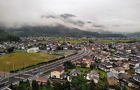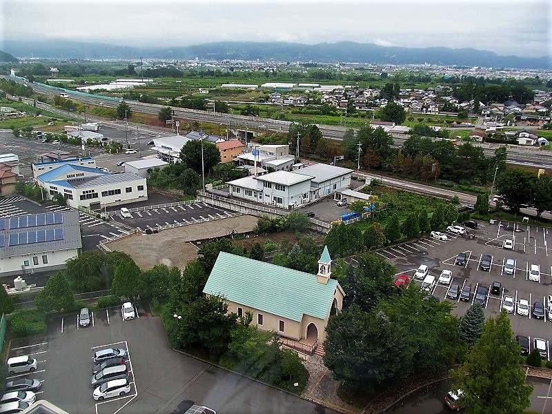 ![]() 目の前を上越道が走るロイヤルホテル長野11階より西の飛騨山脈方面 |