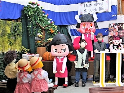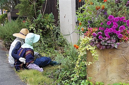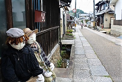 ![]() 高取城の城下町風情の残る土佐街道の町並みに200体のかかしが・・・ |