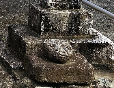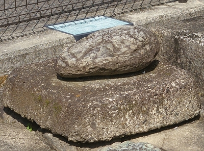 ![]() 近くの商店主(じきじき説明)が見つけた人面石 左から見ると泣き顔、右からは笑顔に見える |