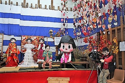 ![]() 近鉄「壺阪山」駅前から街並みに沿って町家のかかしが、表情豊かに日々の暮らしを演出! |