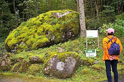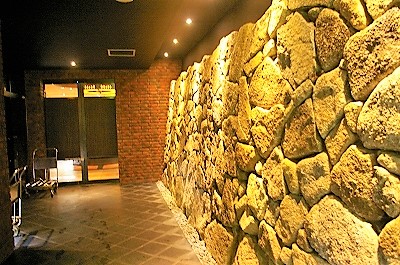 ![]() 右)近くにある光前寺ヒカリゴケの石垣を模したエントランス(実際の石垣はもっと低い) |