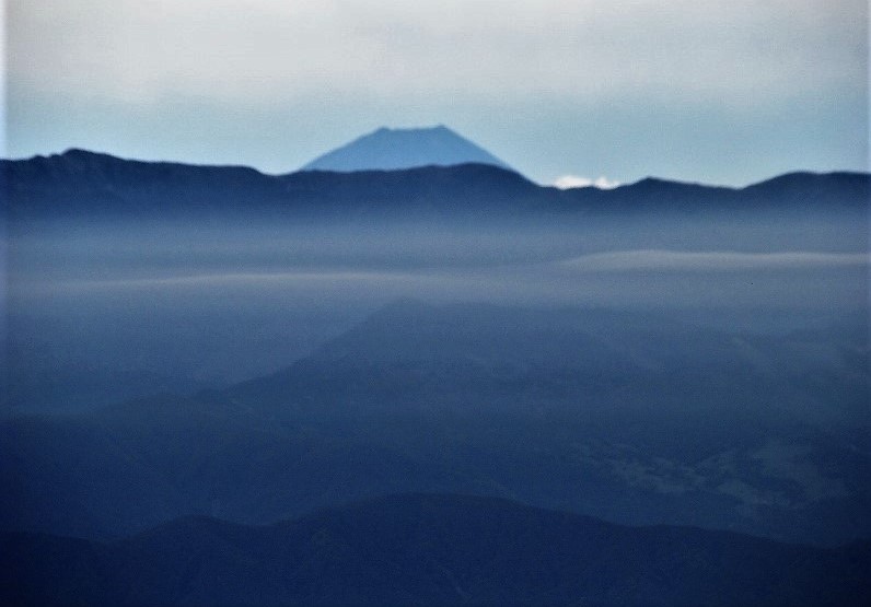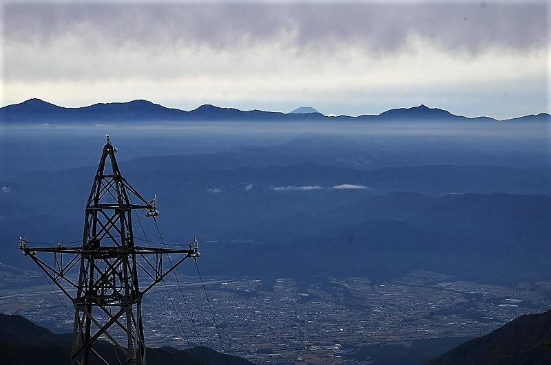 ![]() 駒ケ根の町と天竜川を見下ろす! しばらくの間、富士山を見ることが出来ました。 |