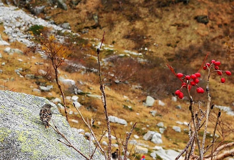 ![]() ナナカマドの実がしがみついている |