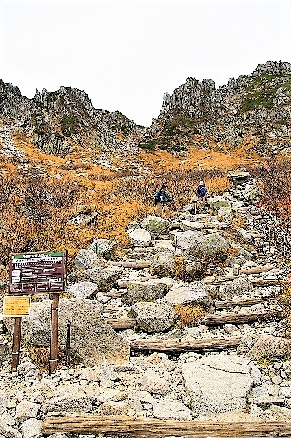 ![]() 巡視員(本来は北アルプス案内)の人に説明を受ける「稜線まで何もないよ」 引き返し千畳敷カール遊歩道へ |