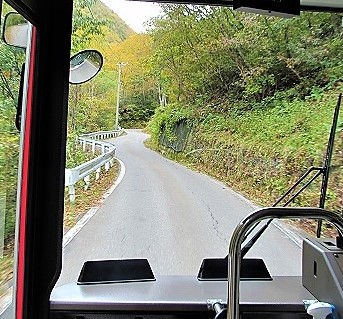 ![]() スリル満点の山道を20分 |