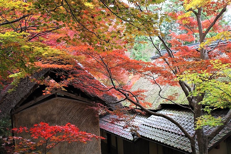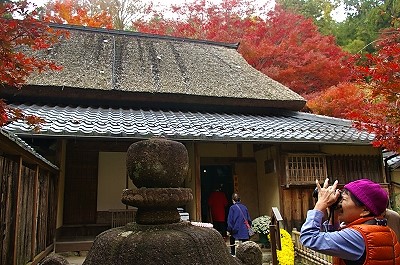 ![]() 左)江戸時代前期の茅葺書院 右)本堂 |