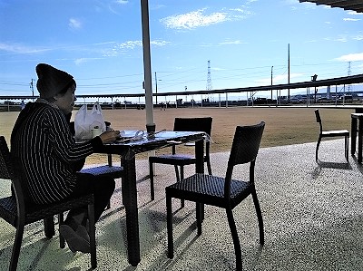![]() 解放感満点のテーブルで |