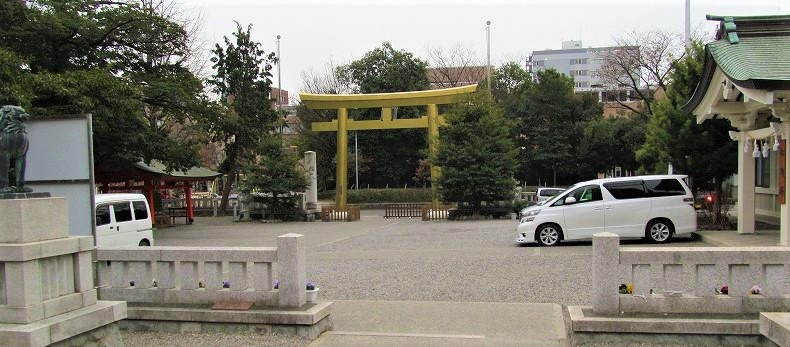 ![]() 岐阜県岐阜市金町(岐阜公園から近く、観光バスが立ち寄り有名です) 大鳥居が黄金色に輝く! |
