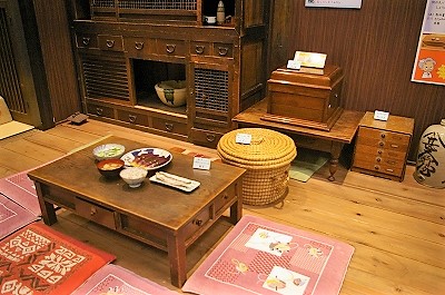 ![]() ちゃぶ台は折りたため丸型でした。 おひつが冷めないように藁で編んだ丸井入れ物が懐かしい! |