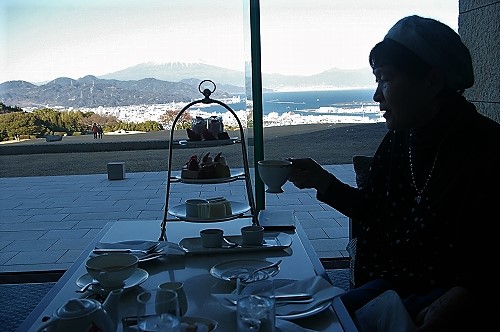 ![]() どうしても食べたいとアフタヌーンティーセット\3500を注文! 富士山8合5尺3450mより高いで〜! |