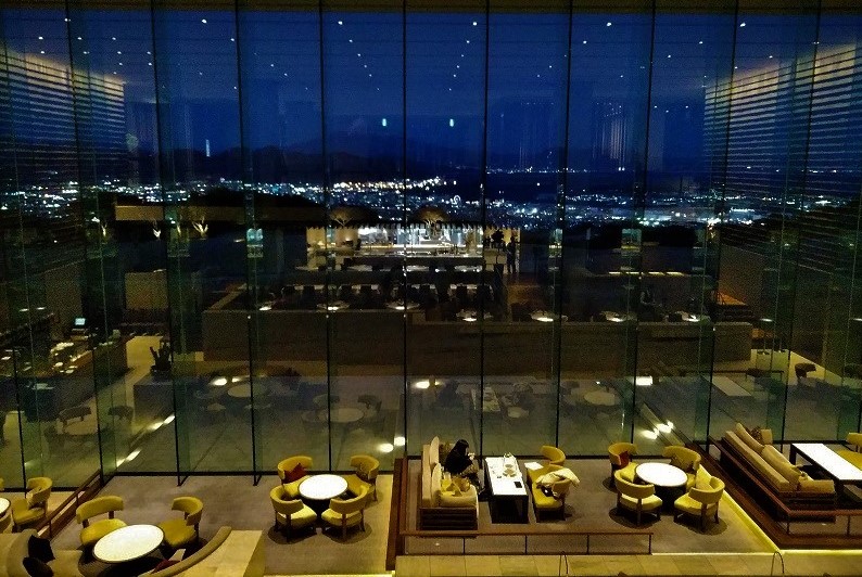 ![]() ロビーに入ると全面ガラス張りのパノラマビューに圧倒されます。 幅30mのパノラマグラスエリア |