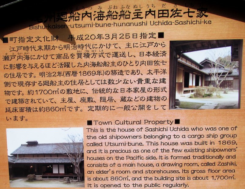 『主 屋』 内田家は、幕末から明治にかけて内海を代表する有力船主であった内田佐七家 |