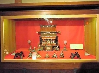 ![]() 御殿飾り(お供えのひし形の餅は本物なので毎日冷蔵庫にしまうそうです) |