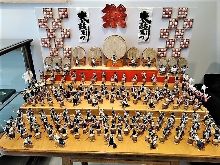 ![]() 福祉施設さわらび作:駒ヶ根市第50回特別展「2019まゆクラフト作品展」最高賞の作品「日本一の揃い打ち」 毎年8月に開く「太鼓まつり」の代名詞「岡谷太鼓300人の揃い打ち」の打ち手や太鼓を、繭を使って表現した。 |