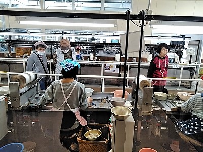 ![]() 株)宮坂製糸所では製糸全盛期から変わらない諏訪式繰糸機、日本古来の上州式繰糸機が実際に稼動している様子を見学できます。 |